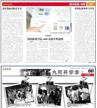 9月2日,bb贝博4000余名2012级新生报到入学。潍坊晚报、齐鲁晚报等媒体对此作了报道。