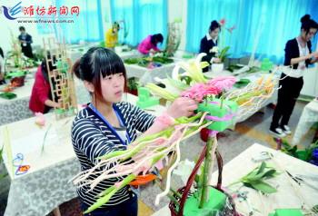 25日,为期两天的2012山东省职业学院农业技能大赛在bb贝博艾弗森官方网站进行了操作技能的比赛,来自全省11个地市、14所高职院校的89名学生参加了种子质量检测、艺术插花等6个项目的比赛。图为选手在参加艺术插花项目的比赛。