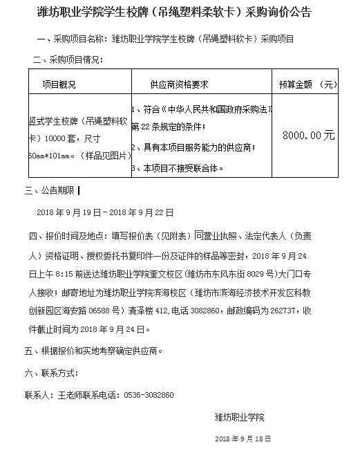 bb贝博艾弗森官方网站学生校牌(吊绳塑料柔软卡)采购二次询价公告