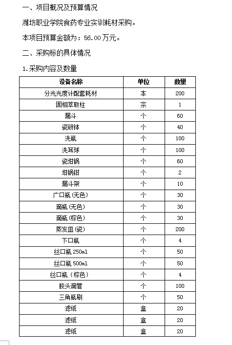 bb贝博艾弗森官方网站食药专业实训耗材采购项目需求方案