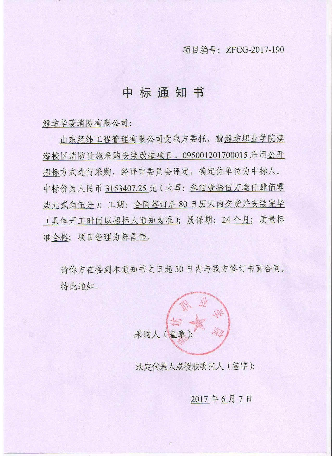 bb贝博艾弗森官方网站消防设施采购安装改造项目中标通知书