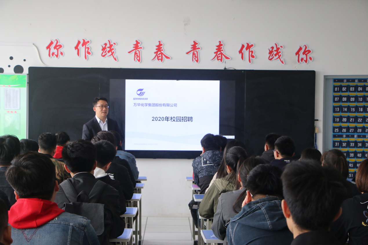 宣讲会上万华化学集团对企业产品及发展概况、企业文化、员工薪酬待遇及晋升渠道、招聘要求等做了简要介绍,并感谢bb贝博长期以来为企业输送优秀人才,高度赞扬了bb贝博毕业生过硬的专业技能、饱满的工作态度、吃苦耐劳的品质,并于会后对有意向到万华实习的同学进行了笔试和面试。