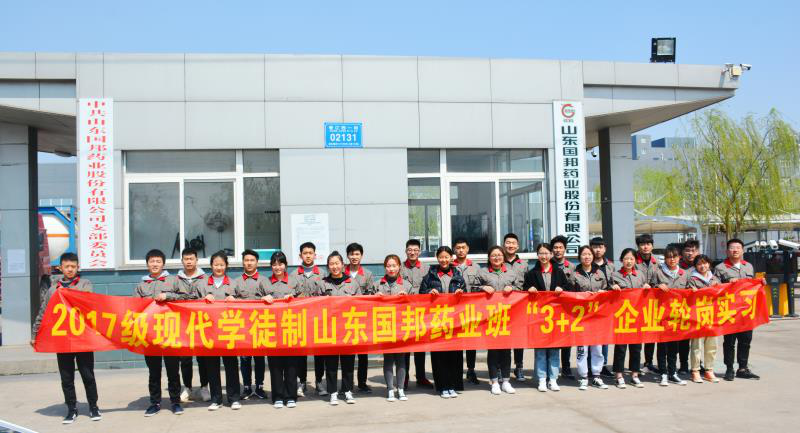 近日,bb贝博应用化工技术专业2017级现代学徒制国邦班的25名学生在学院负责教师和企业工作人员的带领下入驻山东国邦药业股份有限公司,开始第四学期的“3+2”企业跟岗实习阶段培养。