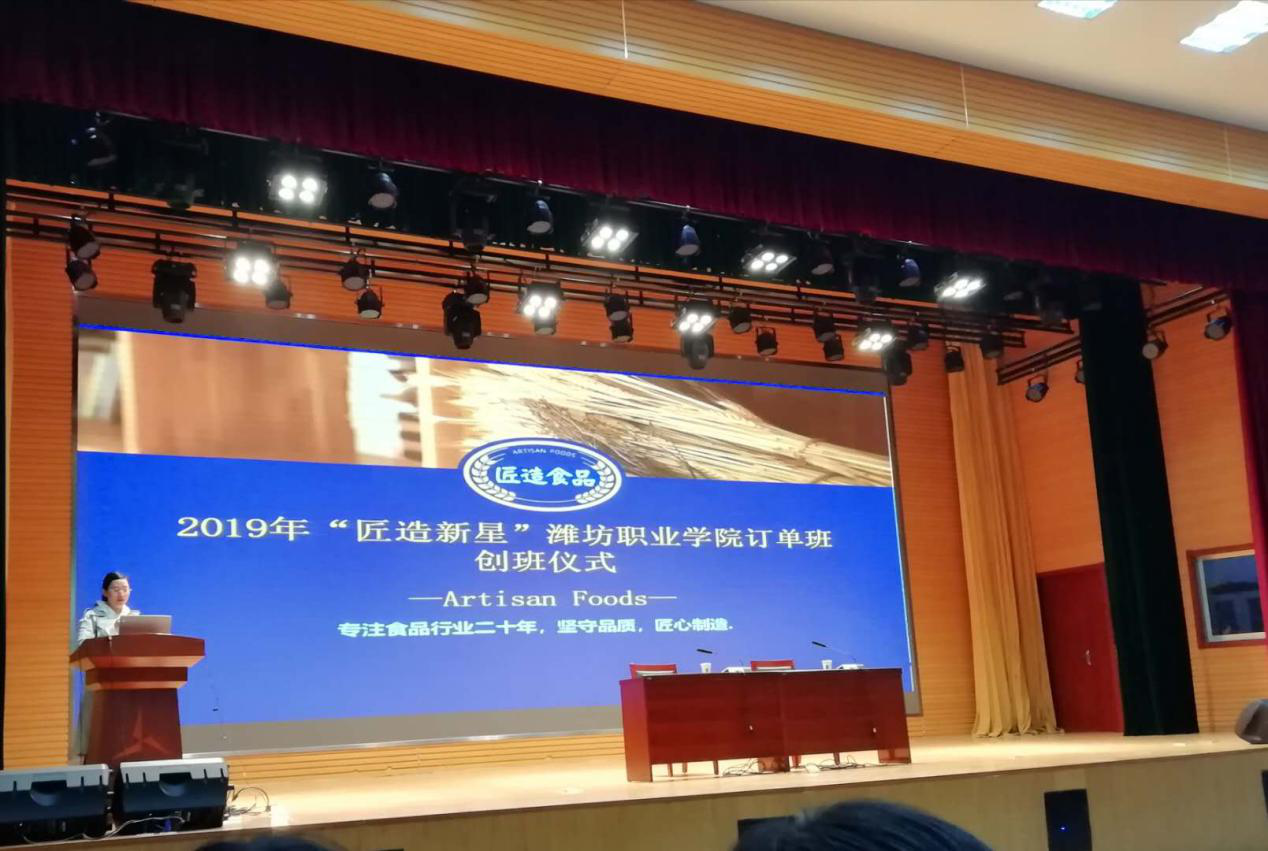 姚威介绍了潍坊匠造食品有限公司的企业文化,分享了稻盛和夫的成功之道,并以自己在母公司潍坊匠造食品有限公司的成长经历告诉同学们,对待工作要认真负责,做一个“自燃型”的员工,主动担当才能更快地成长。随后,潍坊匠造食品有限公司招聘经理李婷婷对“匠造新星”bb贝博艾弗森官方网站订单班做了详细的介绍,包括组班模式、培训计划、成长路线等方面的具体内容。