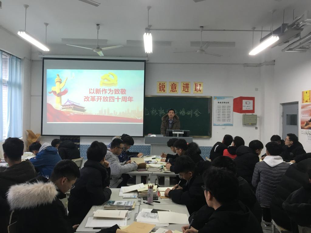 汽车工程学院于1月2日下午在惠泽2号楼B区138教室组织开展“以新作为致敬改革开放四十周年”入党积极分子主题教育。