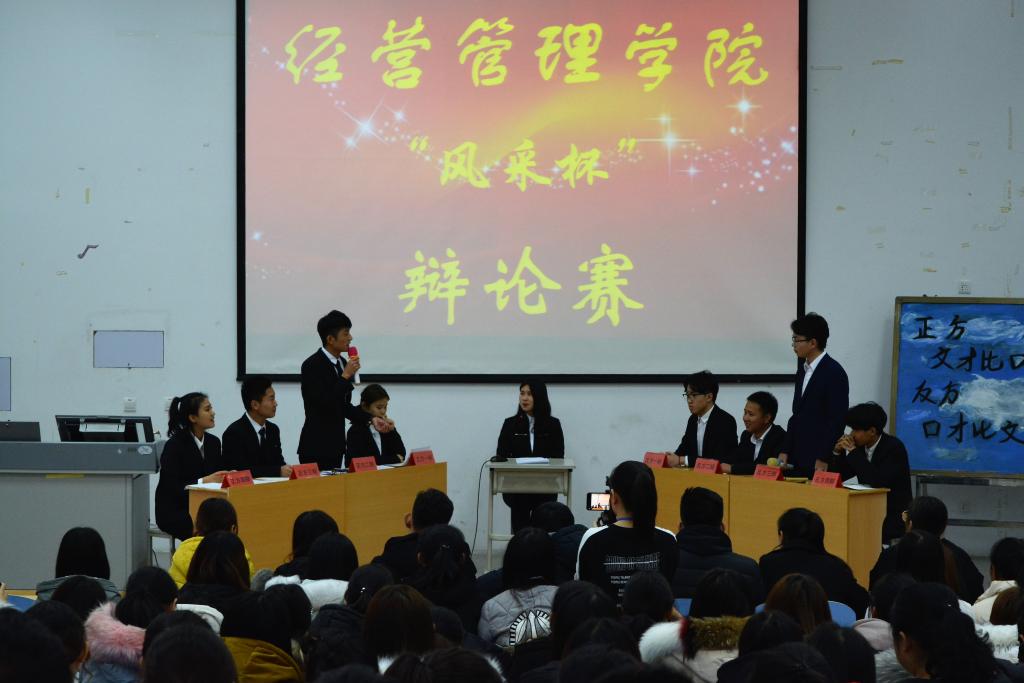 为发扬学生积极向上的精神状态,发掘辩论人才,提高学生的思辨和团队组织能力,激发学生的自主思考能力,12月6日,经营管理学院在惠泽一号楼举行“风采杯”辩论赛。