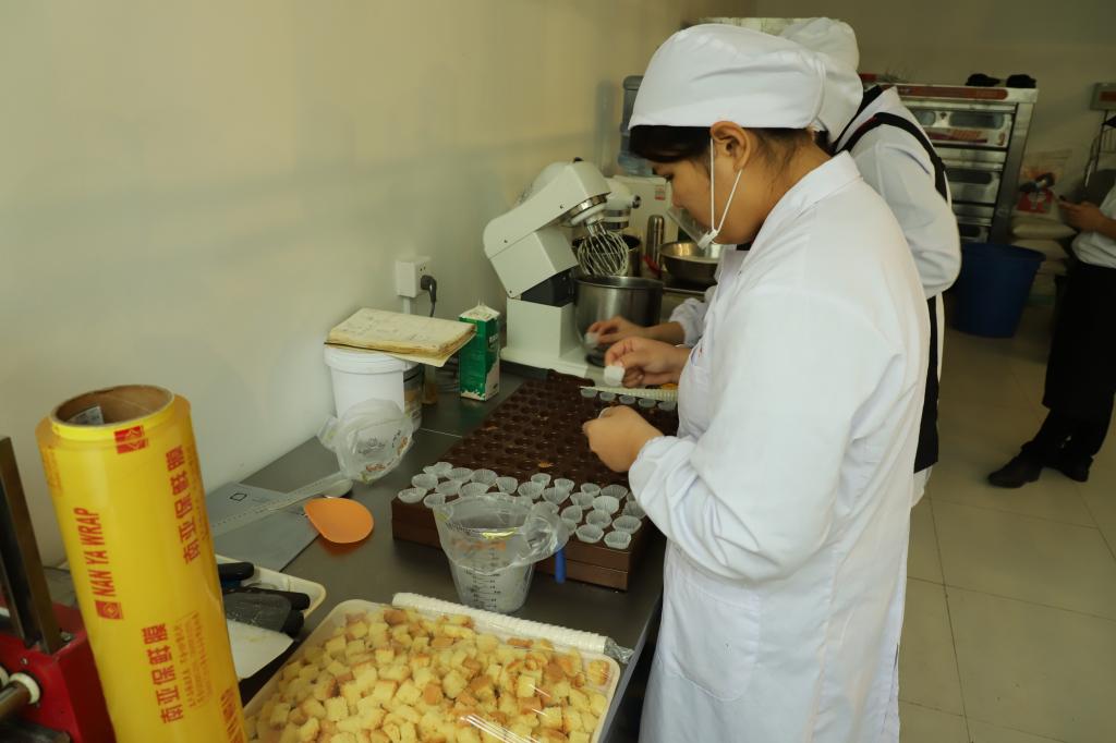 “美味工坊”大学生创新创业实训中心主要开展传统中式糕点、西点、生日蛋糕、面包等产品的研发、生产实训和创新创业实操。依托bb贝博食品类专业,配备多名专业指导老师,从产品配方的设计、原料的选取、制作工艺的完善、产品品质的鉴定和产品的营销等方面对学生进行指导,着力打造“营养、安全、健康”品牌。从原材料选取、生产过程、生产标准严格把关,不添加任何防腐剂,做师生满意、放心、信得过产品。启用当日,吸引了全校师生前来品鉴。