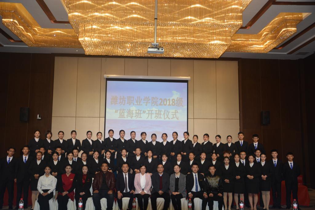 11月15日下午2点半,国际商务学院与山东蓝海酒店集团合作共建的2018级企业订单班“蓝海精英班”开班仪式在潍坊蓝海大饭店举行。山东蓝海酒店集团人力资源部副总监杨兆永、潍坊蓝海大饭店总经理纪荣波、国际商务学院学生工作和产学工作负责同志及2018级“蓝海精英班”全体同学参加本次开班仪式。