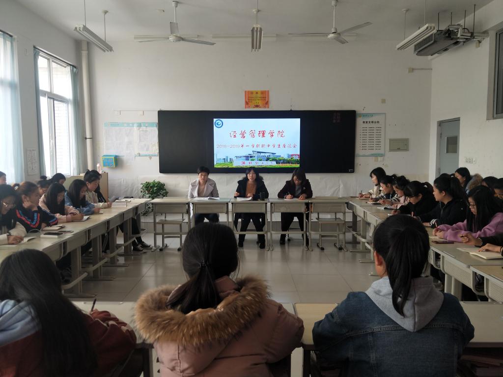 11月13日下午,经营管理学院在惠泽1-A112召开了2018~2019学年第一学期期中教学检查学生座谈会,教学管理办公室全体教师、学生会学习部成员和各班级44位学习委员参加了此次座谈会,会议由韩梅老师主持。