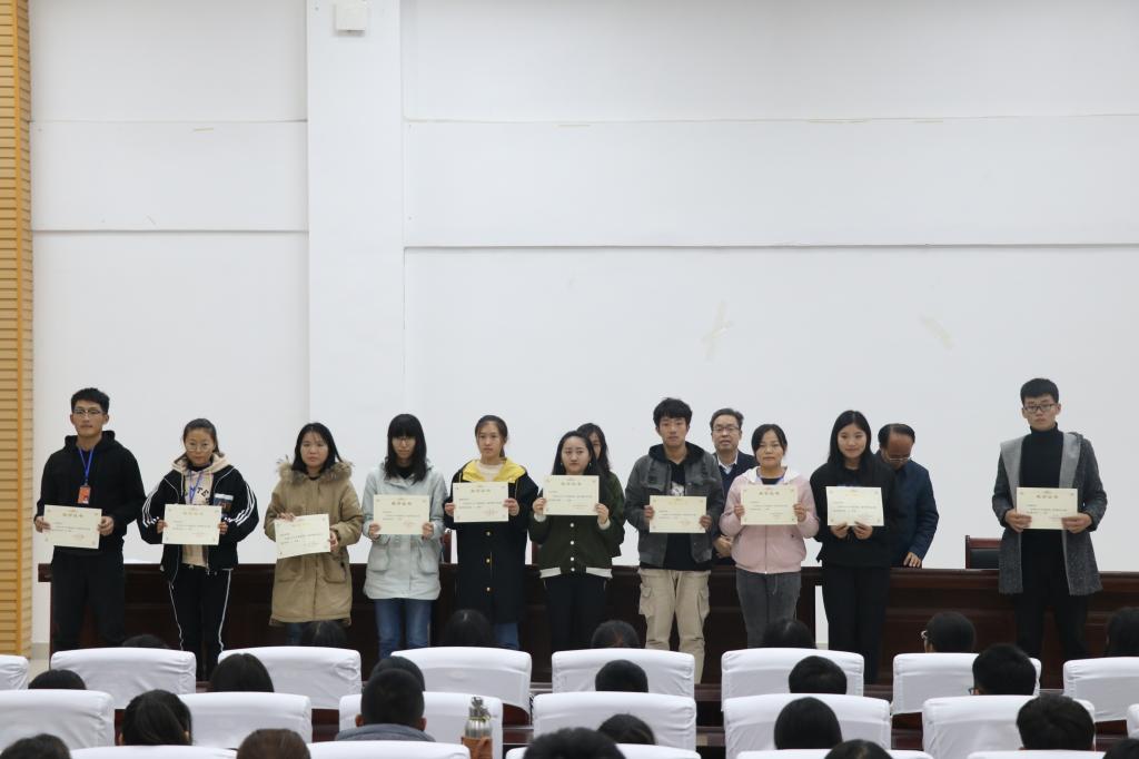 会上,指导教师介绍了记者团的机构设置、工作内容、工作要求等。记者团新、老生代表作了表态发言。同时会上为今年庆国庆征文、摄影比赛获奖作者进行了颁奖。(陈颖供稿)