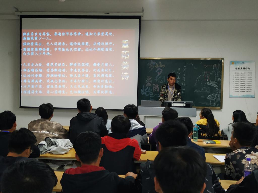 为迎接重阳节的到来,传承中国传统文化,进一步传承和弘扬“关爱老人”的光荣传统。汽车工程学院于10月16日晚在惠泽二号楼B区各班级开展了“爱在重阳”主题教育。