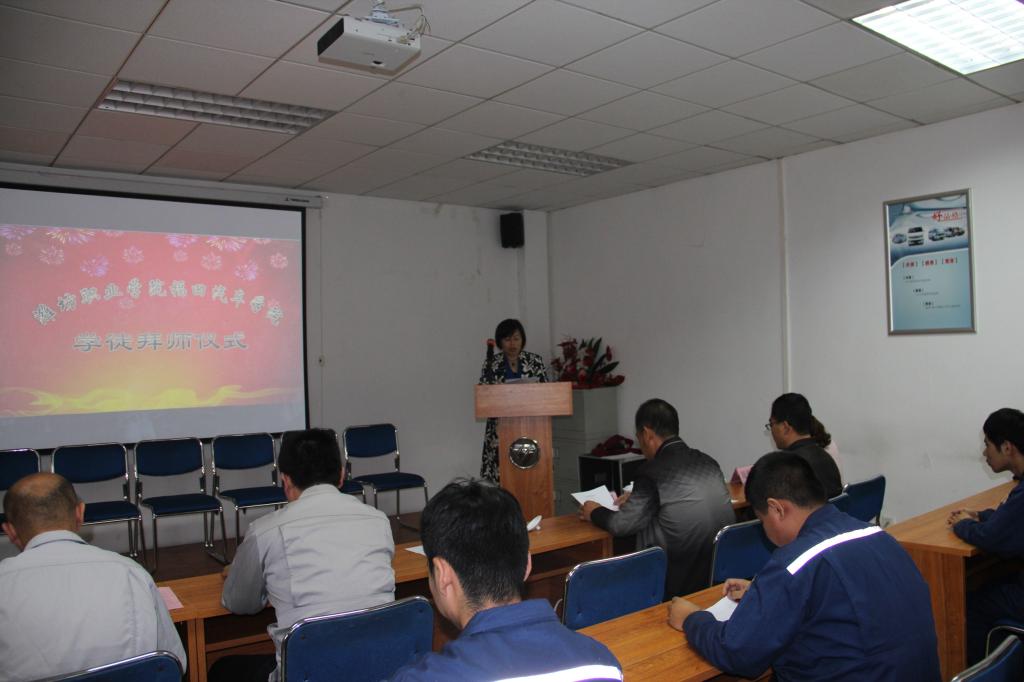 拜师仪式由人力资源部经理潘晓东主持,仪式开始,师傅就座,徒弟鞠躬拜师、敬茶、宣誓,现场氛围庄严隆重,在场师生深受感染。总装部经理、厂区代表、学徒代表分别作了发言。汽车工程学院院长杜洪香同志致辞,她对现代学徒制试点班提出三点希望:一是希望师傅带徒要三管齐下。思想上引导,作风上身教,业务上帮带,把自己的工作经验和方法无私地传授给学生。二是希望带徒形式上不拘一格。企业创造更多的机会促进师傅之间、学徒之间和师徒之间的交流,做到相互取长补短,借鉴提高。三是希望学徒们要虚心学习。努力做到“四勤”:脑勤,多动脑思考;口勤,虚心向导师请教;腿勤,积极主动地进行实践和调查研究;手勤,多动笔,多记录,多实践。