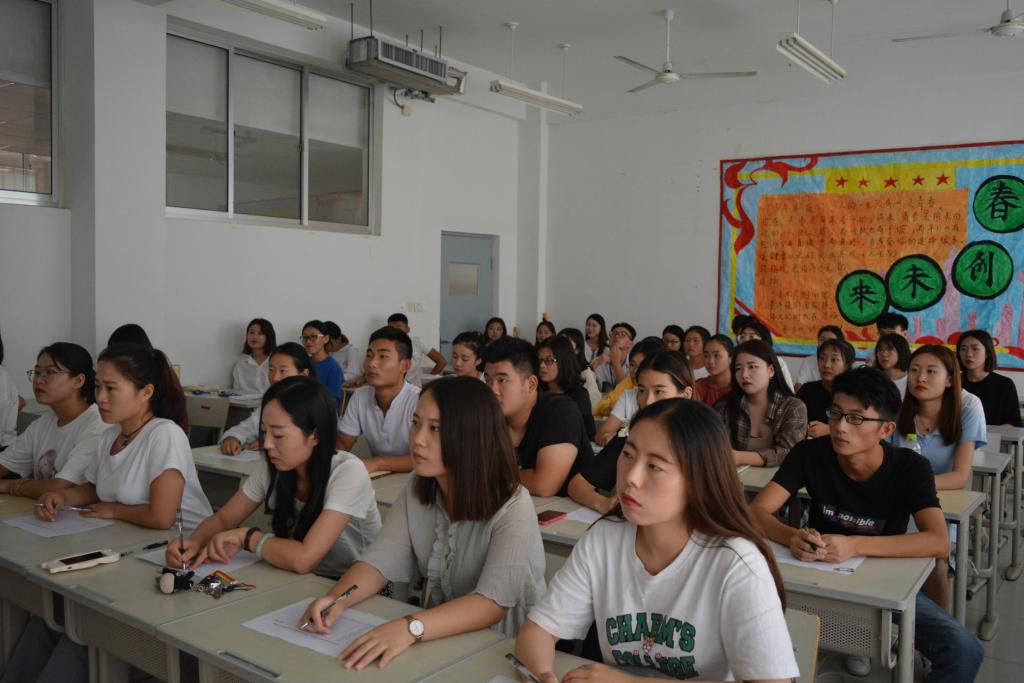 团支书流利的汇报实践成果,抒发对本次暑假社会实践的感想,同学们认真听讲并热烈地鼓掌,结合自身向优秀班级学习借鉴。