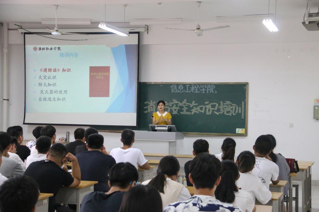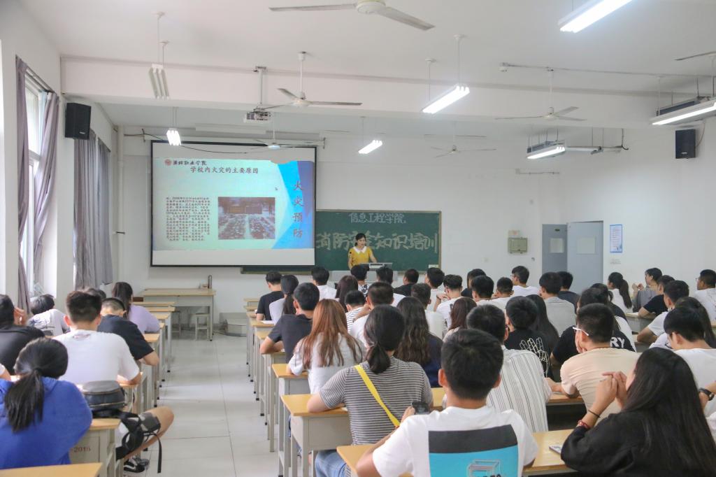 为创建良好的校园安全环境,消除各类安全隐患和防范各类安全事故,9月3日下午信息工程学院组织开展消防安全知识培训,本次培训活动由学生管理负责人主持,全体学生干部及学生代表参加了本次培训。