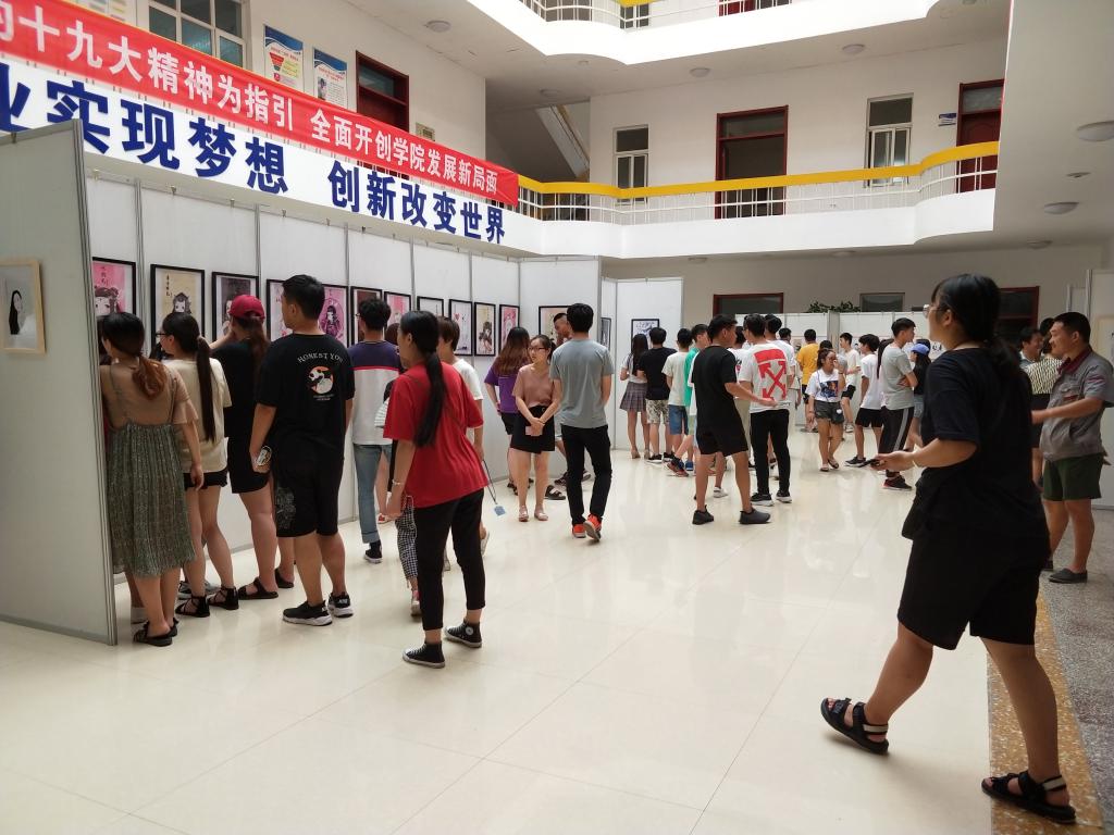 为展示教育教学成果,文创学院首次举办学生个人画展。7月3日,文化创意学院在奎文校区大学生创业中心的展厅,举办“漫步春天—高晓悦同学动漫艺术展”。文创学院近百名师生出席开幕式并参观了展览。