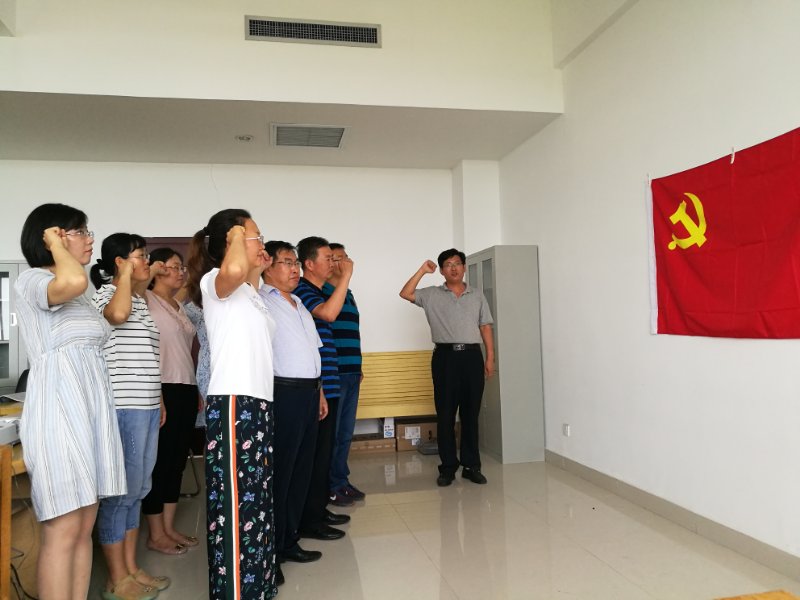 在思政部党支部负责同志带领下,与会党员重温入党誓词,增强“四个意识”,坚定理想信念,承担起立德树人的光荣使命。(马臻臻供稿)
