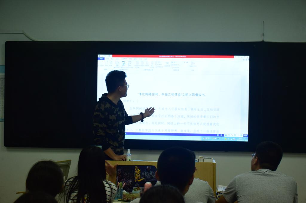 活动伊始,各班班长宣读了《“净化网络空间,争做文明使者”文明上网倡议书》,使班内所有学生深入了解学习“文明上网,绿色上网”的具体做法。活动中,有的班级通过图片、视频等多种形式对典型反面案例做了深层具体的分析,突出了网络谣言的危害及文明上网的重要性。同学们积极讨论,纷纷提出自己对网络谣言的理解以及今后青年学生应如何自觉抵制网络谣言。活动尾声,所有同学进行了宣誓,共同宣读了《bb贝博艾弗森官方网站学生网络文明公约》,展现出了同学们对抵制网络谣言的决心。