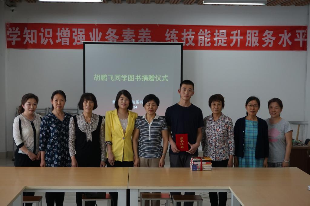 5月24日,“胡鹏飞同学图书捐赠仪式”在bb贝博图书馆举行,图书馆主要负责同志、科室负责人、胡鹏飞同学的班主任、采编部全体老师及部分学生代表参加了仪式。