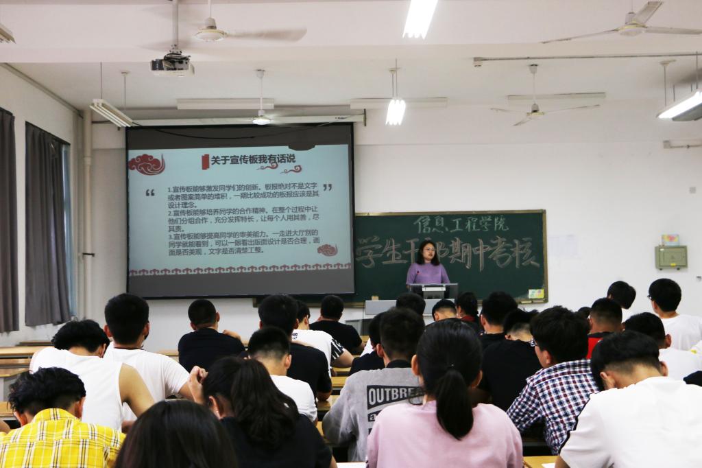为进一步加强学生干部队伍建设与管理,提升业务工作能力和综合素质,5月15日下午,信息工程学院在惠泽2号楼B412教室举办学生干部期中考核点评活动。信息工程学院学生管理负责人及学生会主要学生干部参加了本次考核点评活动。