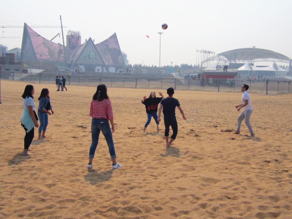 当日午时,阳光明媚,春意盎然,留学生们坐上大巴车一路欢声笑语,欣赏了市区到滨海沿途美丽的风景和花园式的城市绿化,让他们为之赞叹。到了美丽宽阔的海滨沙滩,他们根据自己的爱好特长,分组开始不同形式的活动,随着音乐跳民族舞蹈的,打沙滩排球的、摔跤的、放风筝的、品尝异国美食的、与游客练习讲汉语的,气氛热闹欢快,使他们在紧张好的学习之余,体验了一次文化大餐。