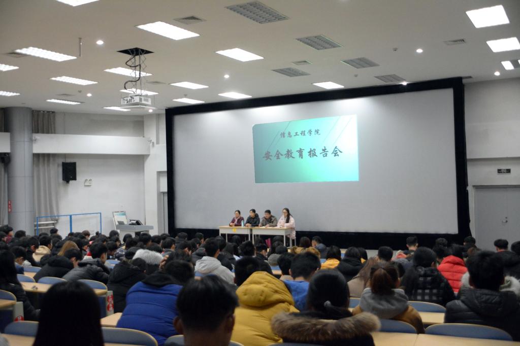 为强化学生安全意识,提高学生风险防范能力,创建平安校园。12月11日,信息工程学院在惠泽2号楼报告厅举行学生安全教育报告会,学生会主要学生干部、各宿舍长参加了本次会议。