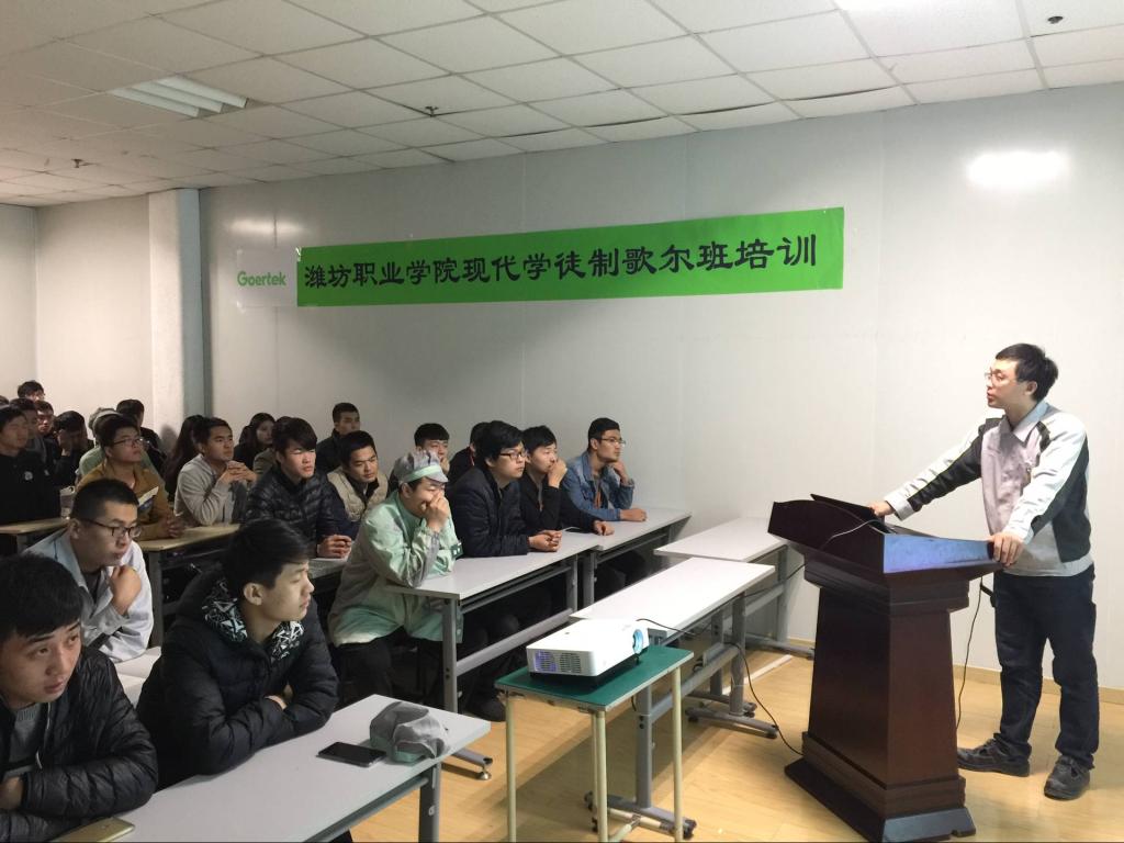现代学徒制试点项目是bb贝博以省级现代学徒制试点为契机,与歌尔股份有限公司签订的战略性合作项目。今年9月18日,2016级数控技术专业44名学生在歌尔股份有限公司的培训中心举行了隆重的拜师仪式,并被媒体“直播潍坊栏目”全程报道。截止发稿目前,44名学徒均在歌尔PMF-PPM事业部注塑中心重要岗位任职,学习工作情况良好,得到企业领导一致好评。