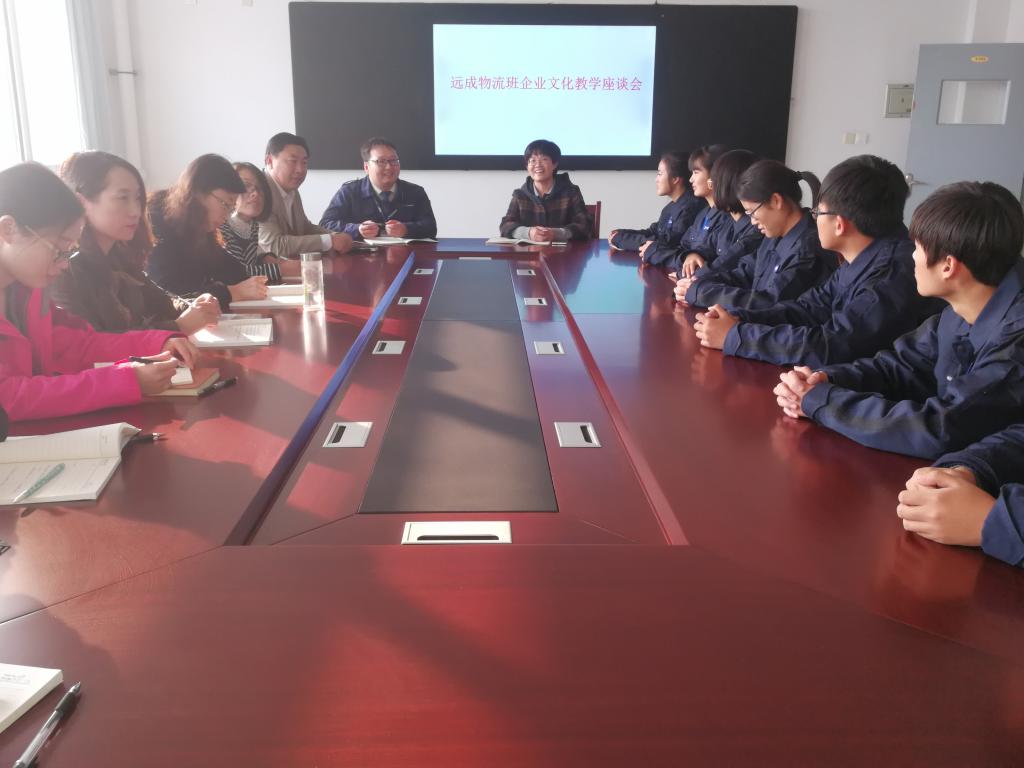贺小波还与部分物流管理专业的师生进行了座谈交流,就远成物流班开设课程的教学方法、企业项目引入等方面发表了各自的心得和感受,也对学生学情、教学安排、课堂教学、实训环境等方面提出了各自的建议和想法。