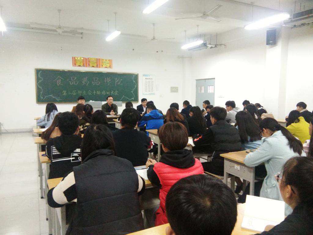 11月1日下午,食品药品学院组织全体学生会成员举办了以“努力把自己培养成为一位合格的、称职的学生会干部”为主要内容的第二届学生会干部培训班,分管学生副院长主讲,辅导员团总支办公室老师参加。