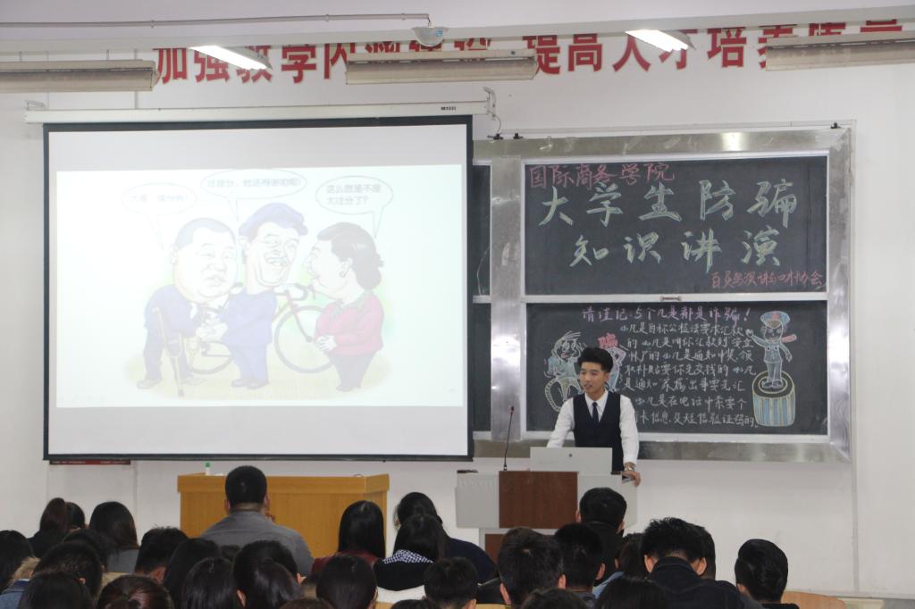 11月1日下午,国际商务学院“百灵鸟”演讲与口才协会在奎文校区举行了“提高学生防骗意识,创建和谐安全校园”主题讲演比赛,全面提升学生识骗防骗能力和意识。