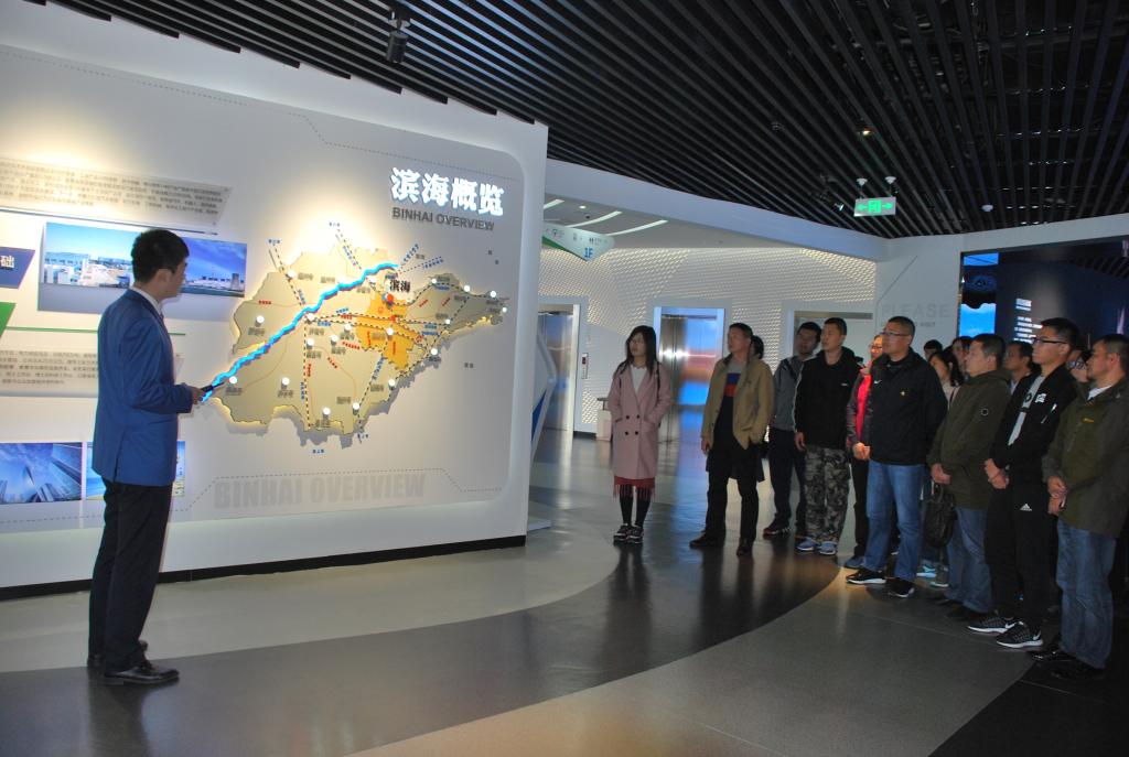 我市自2013年实施突破滨海战略以来,便将滨海作为全市战略布局的重点环节,以此引导和促进全市经济转型升级。bb贝博作为科教园区首批入住的高职院校,抓住这一战略机遇,各项事业得到了长足的发展。潍坊滨海城市艺术中心总建设面积26000平方米,各大展区蕴含不同主题,各具特色。展览区以“启梦、筑梦、完梦”为主线,划分为三大展区,共25个展项,利用艺术表现形式,展现了潍坊滨海盐碱滩变新城的历史足迹。大家行走在如梦似幻的海洋风格通道中,徜徉在浸润着滨海海盐文化特色的展板前,站在巨大的立体电子屏幕中间,别具一格的设计风格、多媒体的精彩展示、互动感强烈的参与感受、反映潍坊滨海建设成就和未来规划的宣传片等等,给大家带来了震撼的“浸入式”体验!宣传片中多次出现的bb贝博建设发展和人才培养展示画面,更令大家欢欣鼓舞!