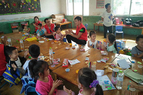 志愿者为孩子们带去了益智玩具、水果等礼物,以饱满的热情投入到支教活动中。面对孩子们真诚稚嫩的笑脸,所有志愿者都尽心尽力地将自己知识传授给孩子们。志愿者们组织了严肃活泼的数学课、生动有趣的手工绘画课、轻松有趣的音乐舞蹈课,并为孩子们讲解火灾急救知识等内容。