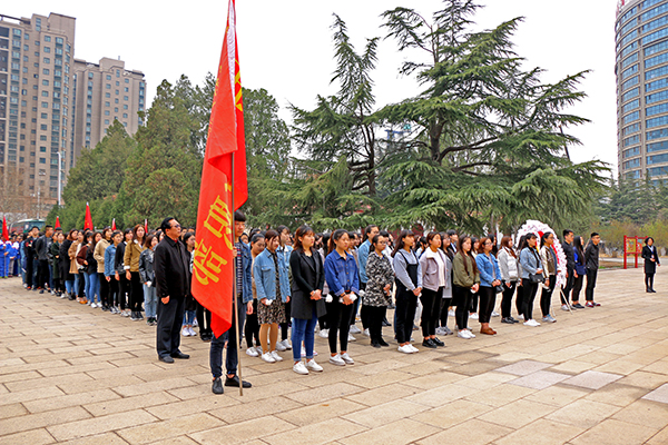五年制高职部党支部负责同志和师生代表200余人,怀着无比崇敬的心情来到潍坊烈士陵园。在烈士纪念碑墓前,全体师生手捧自制白色小花,整齐列队,由学生代表向革命烈士纪念碑敬献了花圈,并一起高唱国歌。讲解员为师生们讲解了革命先烈们为中国革命的胜利抛头颅、洒热血的英勇事迹。在哀乐低回中,全体师生向革命烈士默哀,参加祭扫的师生怀着无比崇敬的心情瞻仰了烈士墓,把白花放到烈士墓前,以表达哀思之情。