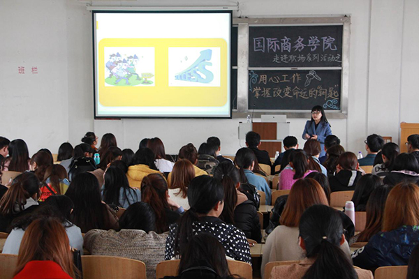 3月30日,国际商务学院举办“走进职场”活动第二期讲座。讲座主题为“用心工作,掌握改变命运的‘钥匙’”,邀请中澜集团职场精英洪小莉女士主讲。