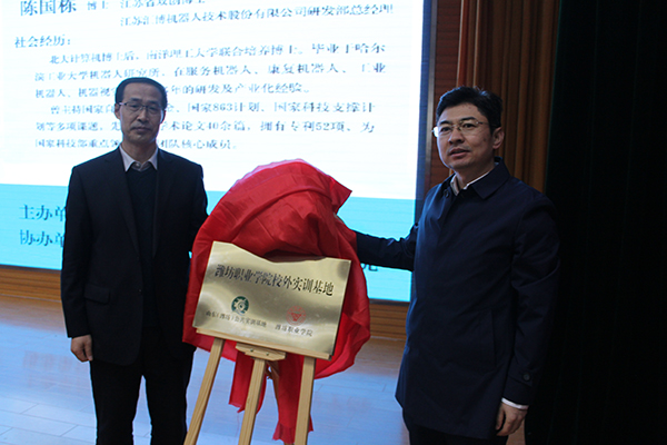 3月23日,机电工程学院工业机器人技术报告会暨工业机器人实训基地合作签约仪式在滨海校区图书馆报告厅举办。该活动是山东(潍坊)公共实训基地“基地进校园——走进bb贝博艾弗森官方网站”活动之一。学院副院长赵君堂,滨海教育投资集团党委书记秦春雨、常务副总经理许京波,教务处、机电工程学院主要负责同志,江苏汇博机器人技术股份有限公司研发部总经理、苏州大学副教授陈国栋出席。机电工程学院教师代表及学生代表参加了活动。