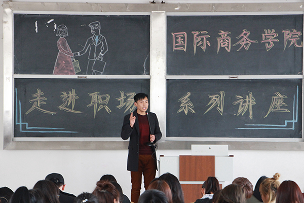 3月23日,国际商务学院“走进职场”系列讲座开讲。首场讲座邀请了长安责任保险潍坊分公司负责人担任主讲。