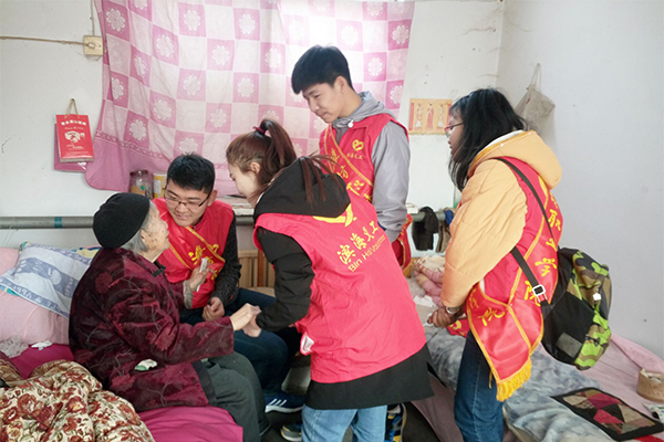 同学们热情的帮助老人清理房间、给老人剪头发、为老人们包水饺,和老人们拉家常,询问他们的健康、生活、饮食等方面情况,耐心聆听他们的心声,让老人们切身感受到了亲人的关爱。老人们也向大学生们敞开心扉,拉着义工们的手,给他们讲述过去的故事。(孙梅供稿)