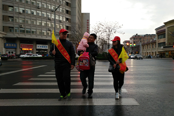 在晚高峰时段,志愿者们头戴红色志愿者帽,手持文明交通旗帜,来到交通主干道上人流量大的十字路口开展了文明交通劝导志愿者活动,劝导行人不闯红灯、不乱穿马路,遵守交通规则。志愿者们通过实际行动,让更多市民减少不文明交通陋习,文明行车,安全出行。活动过程中,志愿者每一句温馨的话,一个小小的指挥动作,都让市民感到分外亲切。每逢遇到上了年纪的老人,志愿者们还会主动搀扶他们安全走过斑马线。