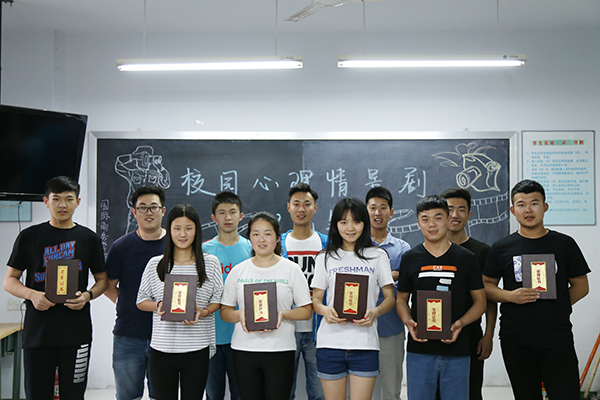 校园心理情景剧DV大赛是学生通过自编、自导、自演的形式来反映自身学习、情感、生活以及人际关系等方面的内心体验。本次大赛收到的每个参赛作品都拥有自身独特的魅力和丰富的蕴含,并能给予观众一定的启迪。在参赛作品中,2014级报关与国际货运班的《自习室》,讲述了主人公从一名不愿与人交流的学生,到体会互相帮助带给她快乐的心理转变过程;2015级旅游管理4班的《友情岁月》,展现了大学生之间的珍贵友情。经过评委打分,比赛评出一等奖1名、二等奖2名、三等奖3名。