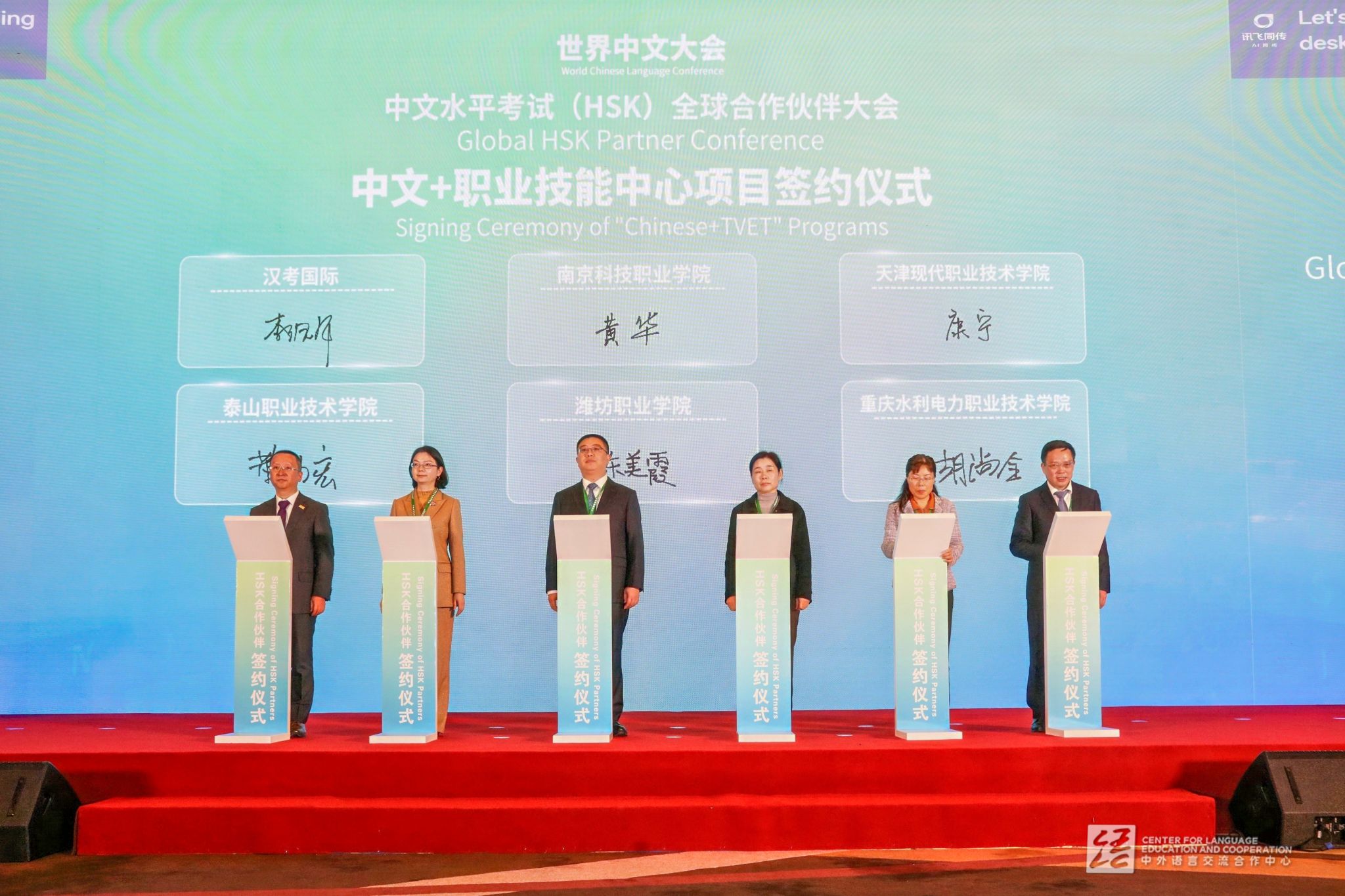 会议期间,陈美霞代表学院与汉考国际签约“中文+职业技能”中心项目,在“新时代、新机遇,推动‘中文+职业技能’教育高质量发展”平行会议上,分享“数字赋能‘中文+职业技能’创新发展”典型案例,并作为颁奖嘉宾为2024 中文联盟数智化教学“金牌”项目颁奖。此外,在中文联盟数智化教学“金牌”项目评选中,李珊珊老师获评“中文联盟数字化教育金牌教师”。