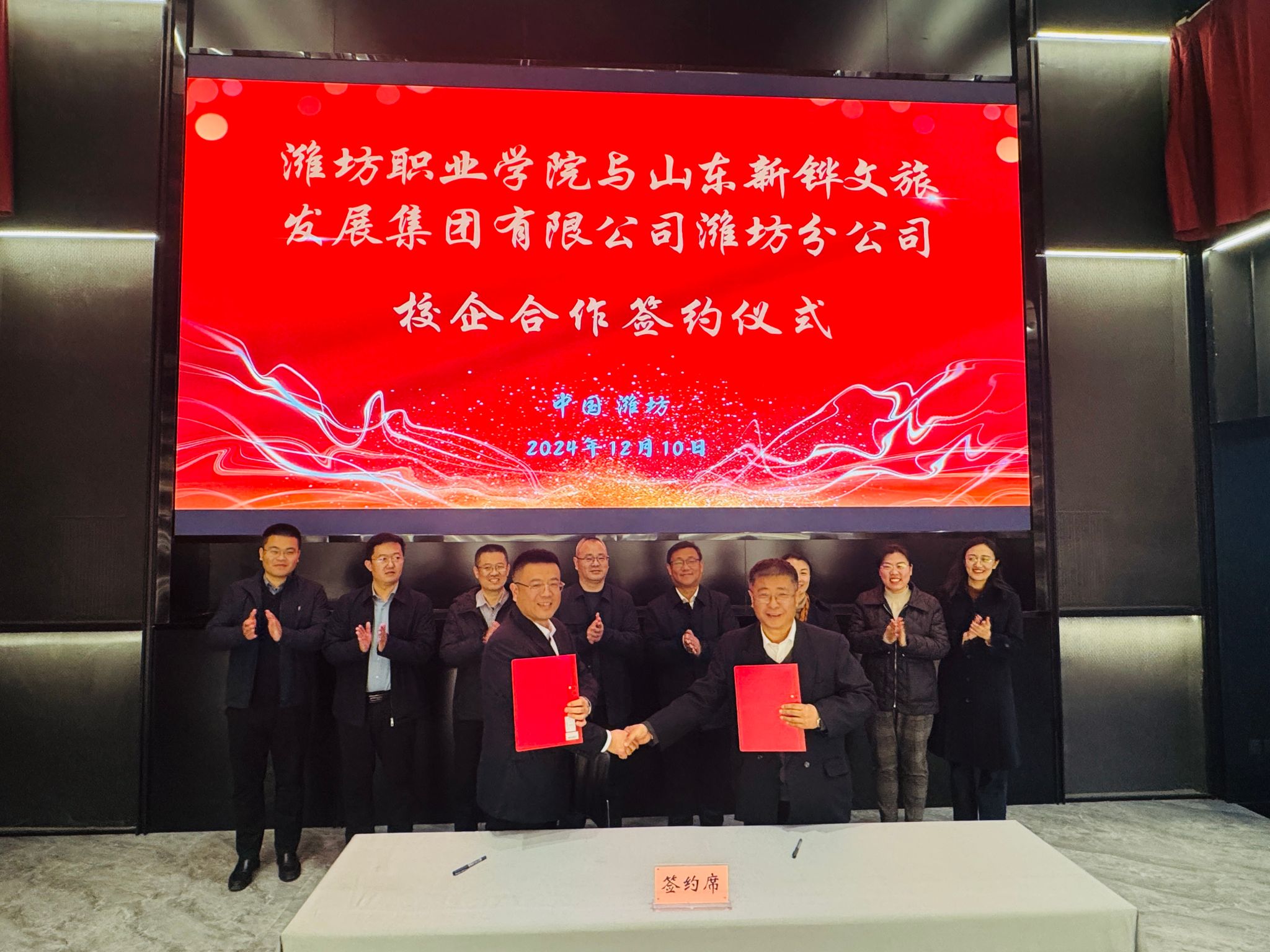 山东新铧文旅发展集团有限公司潍坊分公司与bb贝博代表共同签署了校企合作协议,韩瑞东和新华书店潍坊分公司及新铧文旅集团潍坊分公司领导同志出席了签约仪式。双方希望以此次活动为合作契机,寻找更多的融合点和创新点,为促进学生实习和就业、共建人才培养新高地、共谋人才培养新路径创造新的机遇。