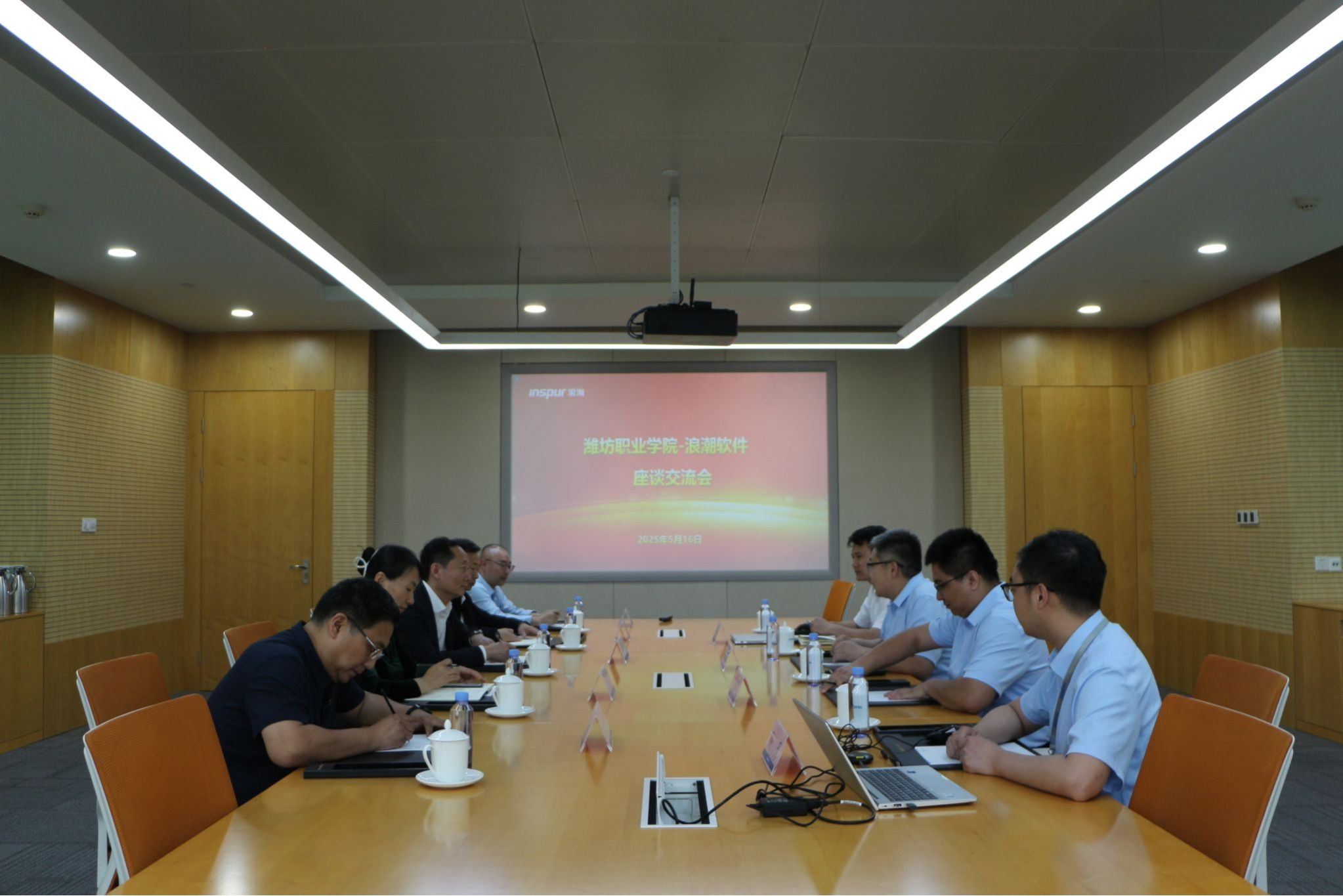 在浪潮集团,浪潮优派科技教育有限公司总经理陈天真介绍了浪潮集团的总体概况,并从产业学院、AI平台、教学资源、职教出海、师资培训、实习就业等方面详细介绍了目前浪潮优派在产教融合的资源优势及合作意向。