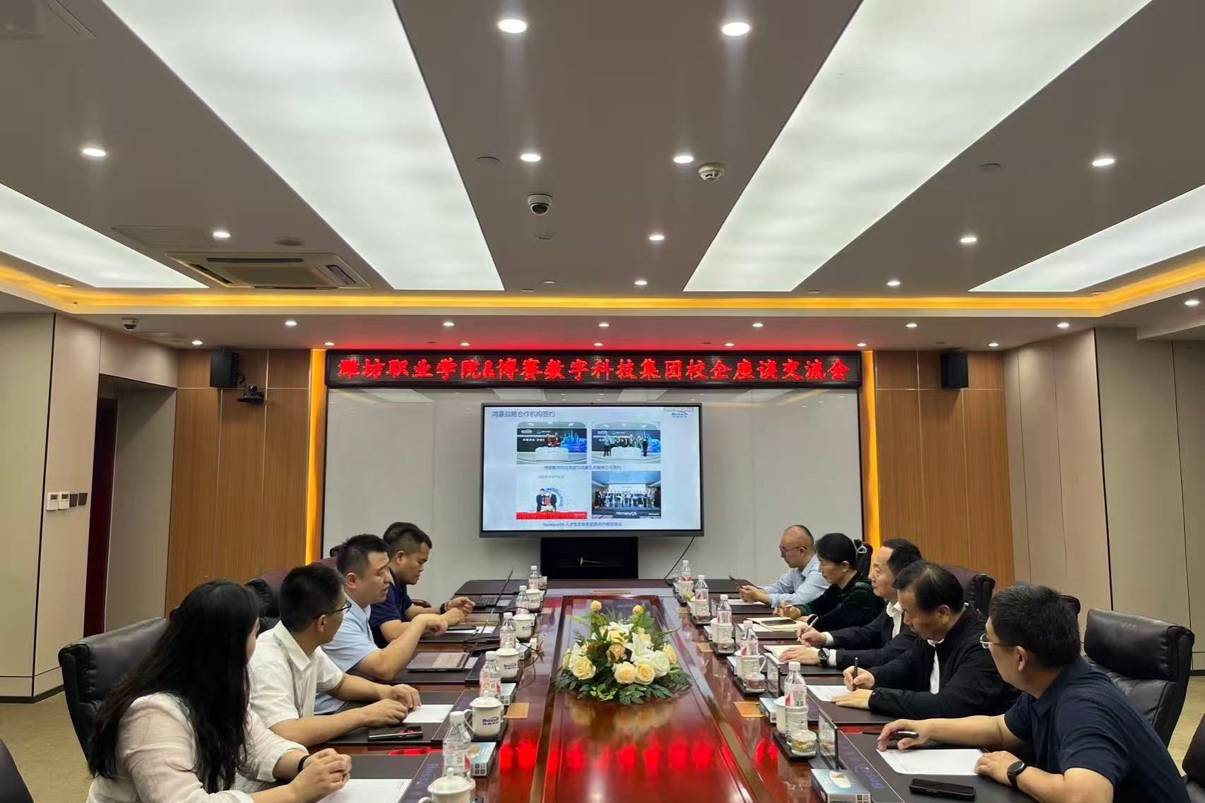 在博赛数字科技集团有限公司,董事长董良回顾了双方合作历程以及取得的育人成效,介绍了集团的发展历程、多元业态布局及未来发展规划,期待与bb贝博加强校企合作,聚焦华为鸿蒙、数据标注等信息产业人才培养,推动产学研协同创新。