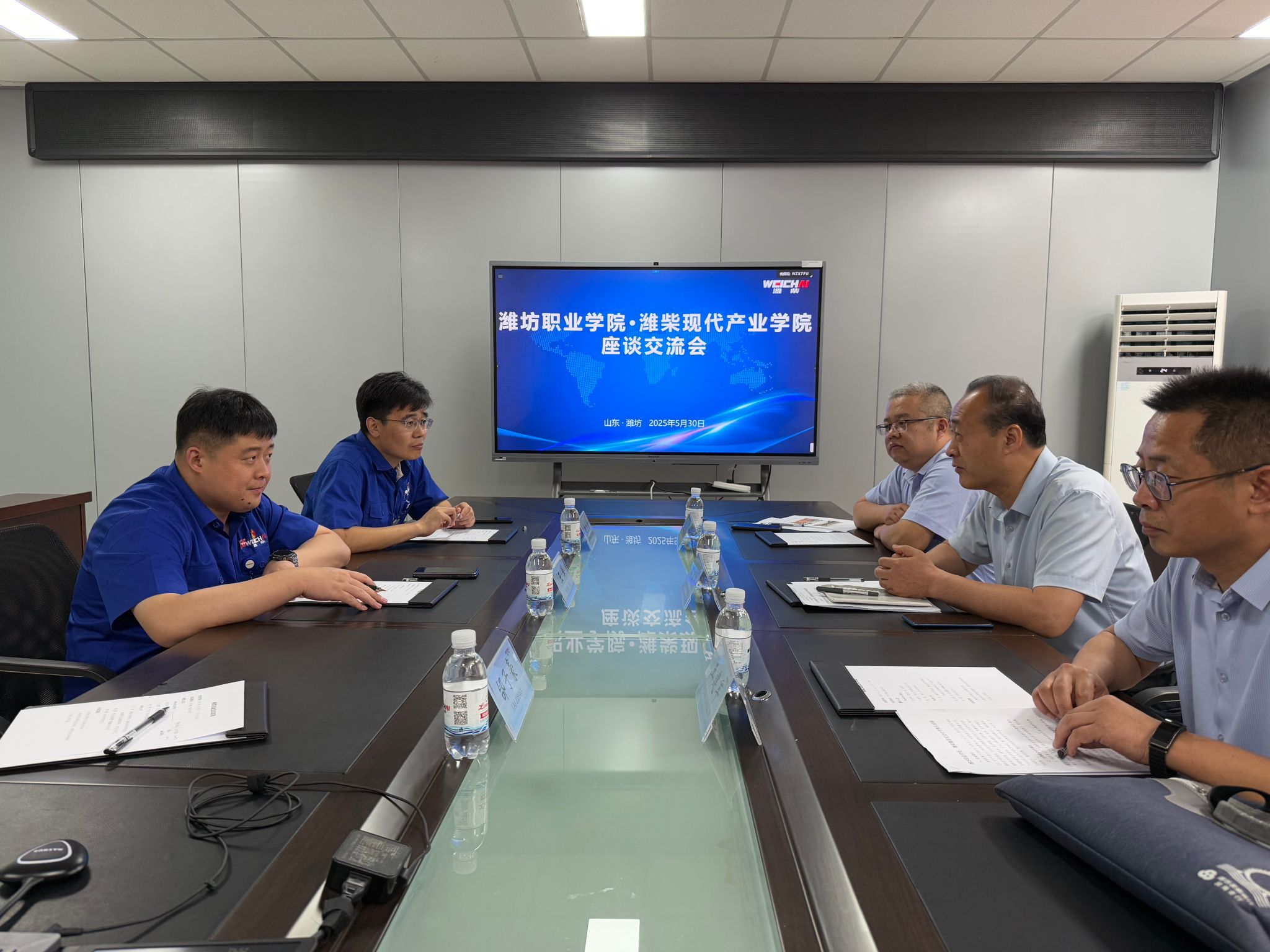 5月30日,学院党委委员、副院长赵宏坤,汽车工程学院党总支负责人、分管校企合作工作负责人到潍柴职业大学座谈交流,双方围绕产教融合、人才培养等议题展开深入探讨。潍柴职业大学校长、潍柴保卫保障部部长王革,校长助理兼产教融合处处长赵志勇等接待并参加座谈。