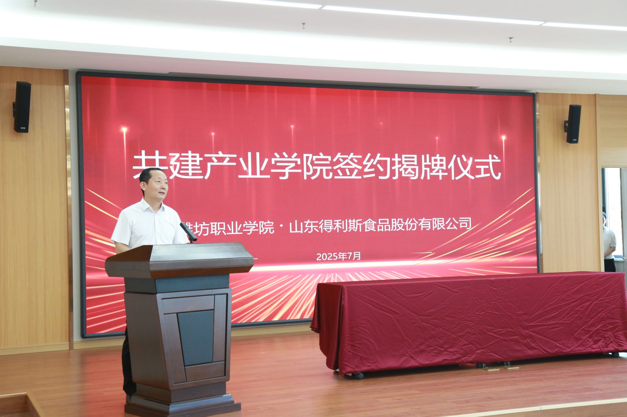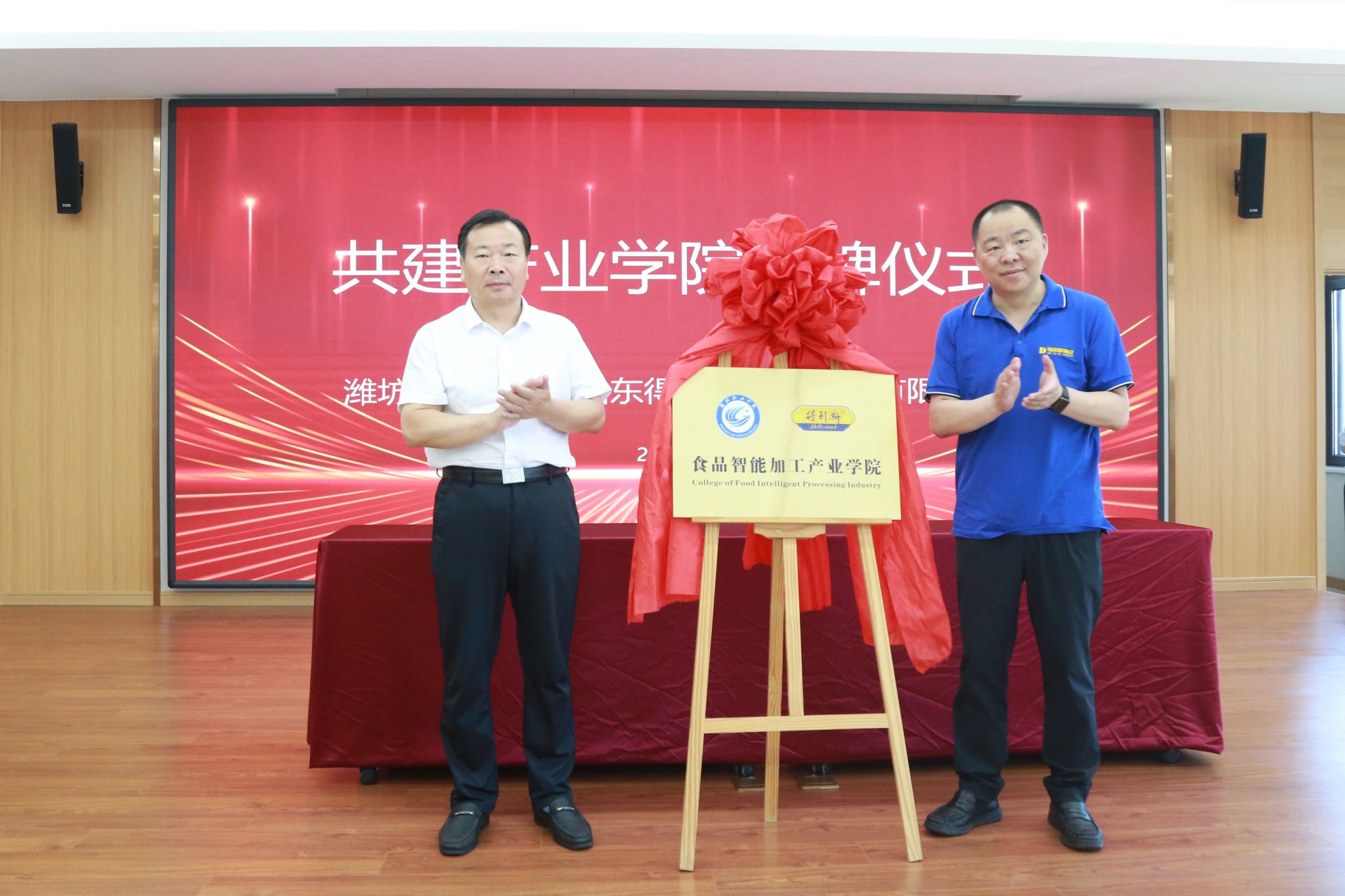 会上,举行bb贝博艾弗森官方网站—得利斯食品智能加工产业学院签约揭牌仪式。贺志强与得利斯集团副董事长徐勇共同为产业学院揭牌,陈美霞代表学院签署共建协议。学院各职能部门、二级学院负责人与诸城市发改局、工信局、人社局、教体局、农业农村局等有关部门负责人及相关企业负责人进行了对接座谈。