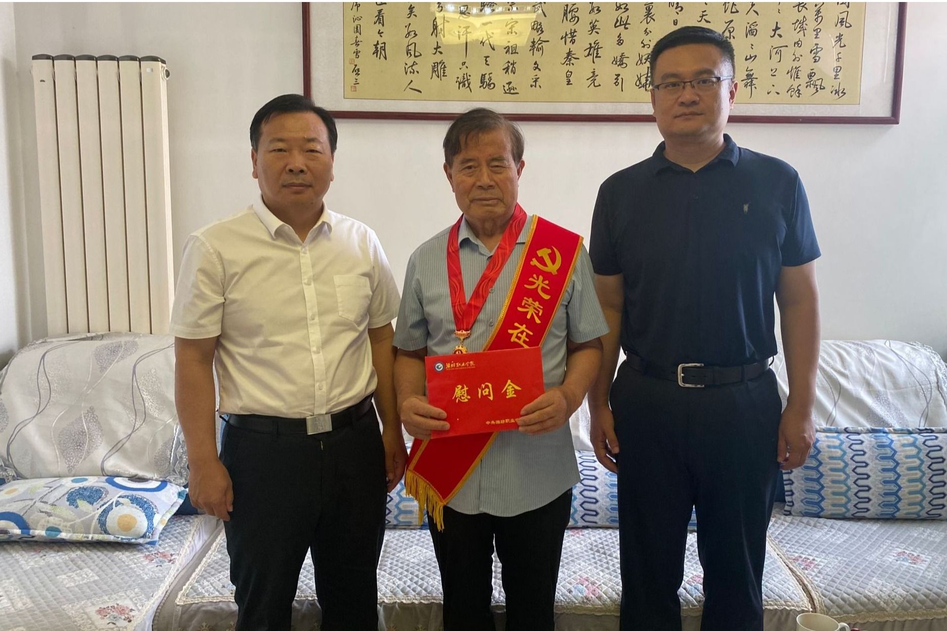 “七一”前夕,学院党委书记王浩、院长韩瑞东,党委副书记贺志强,党委委员高凌云,党委委员、组织人事处(离退休工作处)处长于涛等同志走访慰问了部分老党员和生活困难党员,并为2025年度“光荣在党50年”的党员颁发纪念章。