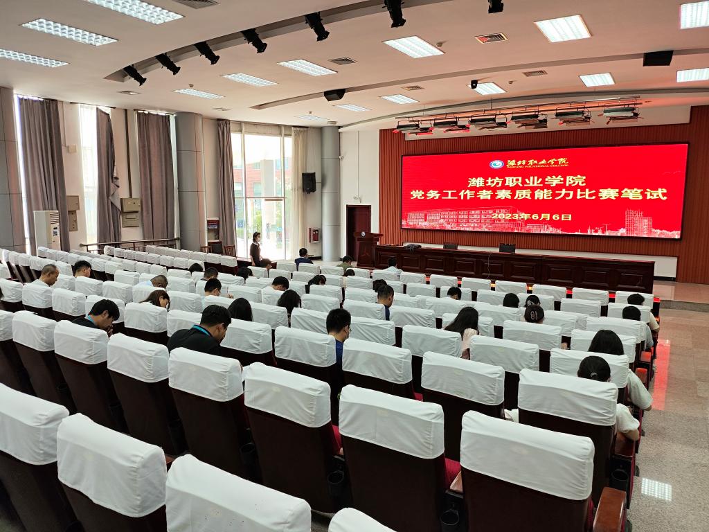 为深入学习贯彻习近平新时代中国特色社会主义思想和党的二十大精神,进一步贯彻落实《中国共产党普通高等学校基层组织工作条例》,不断提升党务工作者素质能力和专业化水平,推动党建工作高质量发展,学院于6月6日-6月7日举办了bb贝博艾弗森官方网站首届党务工作者素质能力大赛。47名党务工作者参加了此次比赛。