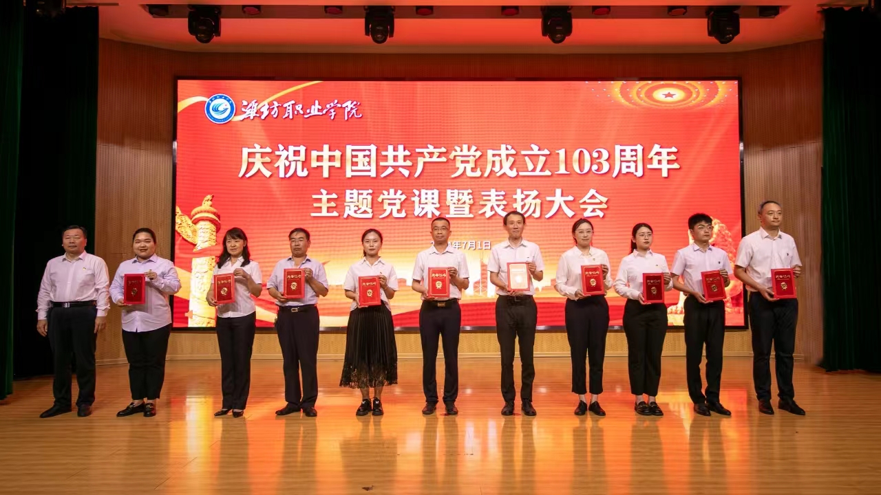 学院举办庆祝中国共产党成立103周年主题党课暨表扬大会,旨在进一步锤炼党性、担当实干,切实发挥先进典型的示范带头作用,教育引导广大党员干部铭记入党誓言,践行育人使命,聚精会神搞建设,凝心聚力谋发展,扎实推进“四大比拼四大攻坚”和“部门擂台赛”等活动走深走实,为实现“一冲两争”高质量发展目标凝聚力量,助力更好潍坊建设贡献力量。(王立志供稿)