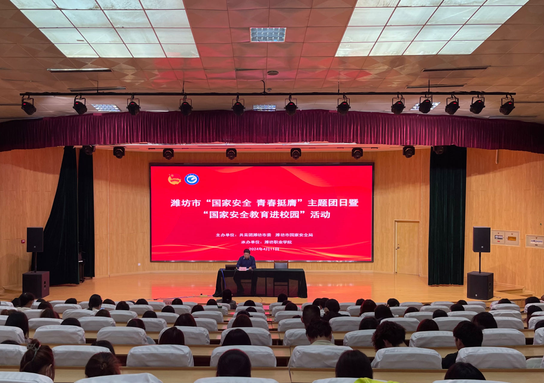 为进一步夯实广大青年学生维护国家安全的思想基础,增强学生对危害国家安全行为的防范意识,营造维护国家安全和社会稳定的良好氛围,4月11日,潍坊市“国家安全 青春挺膺”主题团日暨“国家安全教育进校园”活动在bb贝博艾弗森官方网站奎文校区举办。潍坊团市委权益部部长扈红蕾、潍坊市国家安全局宣讲专员、学院团委主要负责同志、学生代表等400余人参加活动。