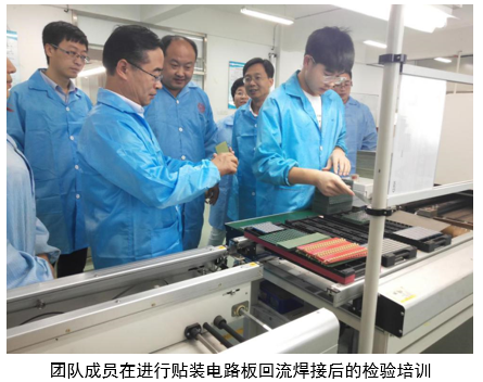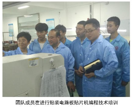 (5)2019年7月18日-7月20日,团队成员在潍坊市寒亭区亿深电子配件加工厂进行电子产品组装工艺流程设计与改进的培训指导,培训活动共3天,培训人数14人。